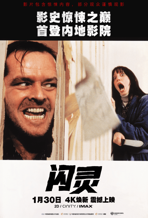 《闪灵》本次将以IMAX、CINITY、普通2D三种不同制式呈现4K修复版的极致视听,助力惊悚升级!1月30日,到影院推开远望酒店的大门,感受一场殿堂级的惊悚洗礼。
